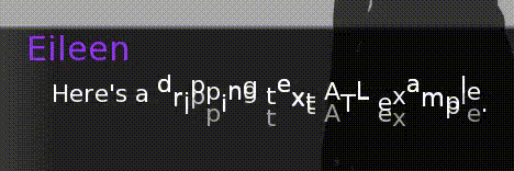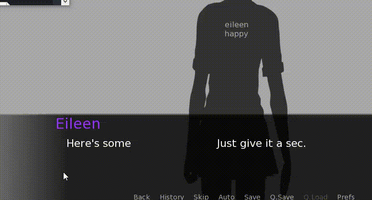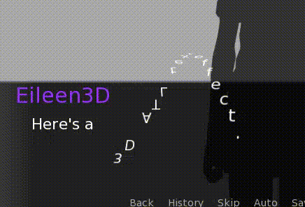 Which allows you to have a text tag apply atl transforms to your text! Even supporting parameters and the use of multiple ATL in sequence. As well as use of 3D stage transforms for 7.4 users. I know a lot of people probably were intimidated to make their own text tags before due to the fact you had to do python programming for it. But now you can just define transforms to get a lot of great effects.